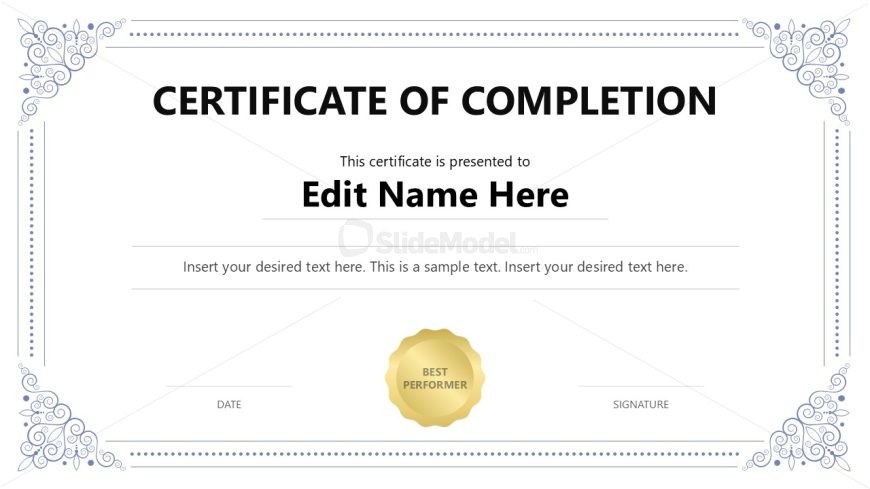 Return to Certificate of Completion PowerPoint Template.