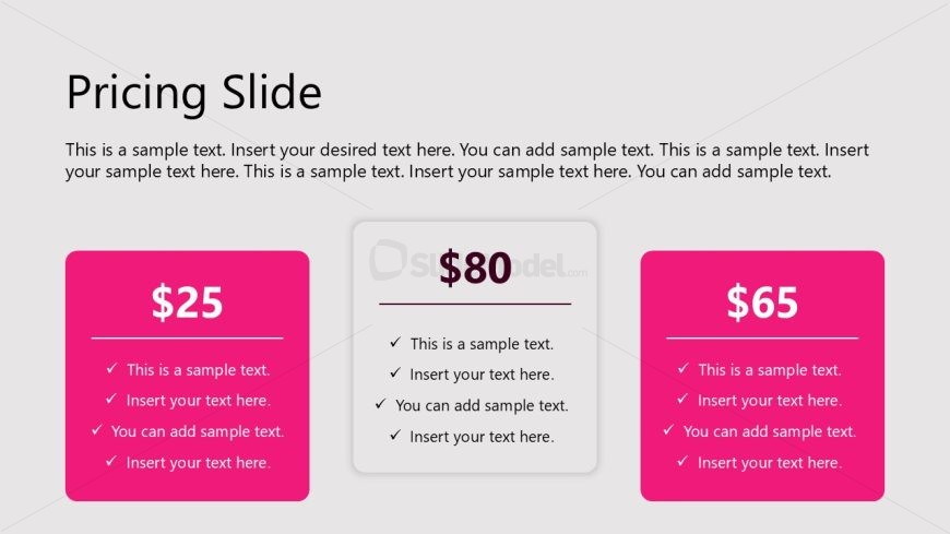 Pricing Slide with Three Blocks with Text