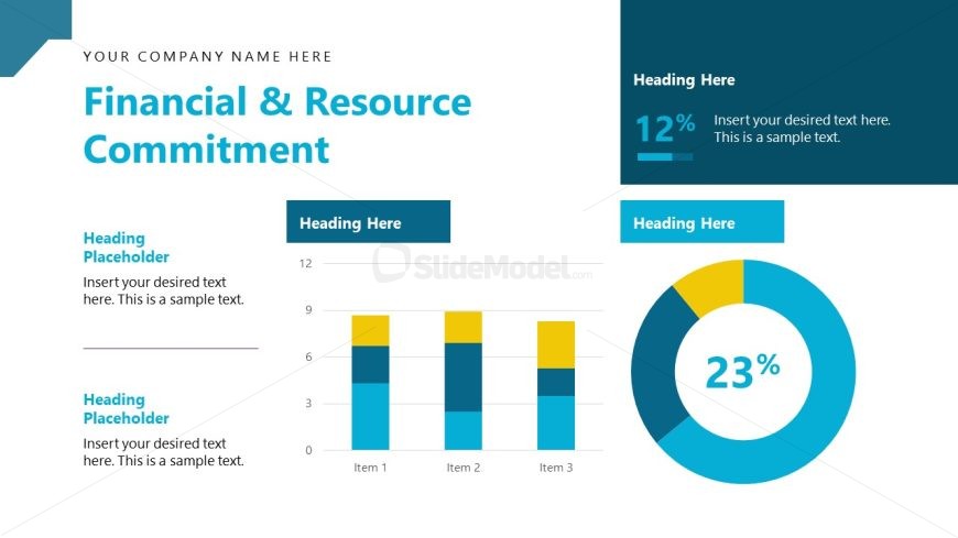 Home PowerPoint Templates Strategy Strategic Alliance PowerPoint Template Financial & Resources Commitment Slide with Data Visualizations